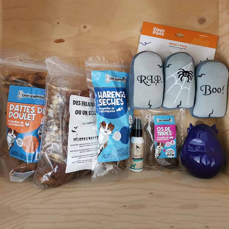 Il y a une telle quantité de choix sur le site de Cani-Gourmand (friandises, jouets, lectures, soins, équipements), qu'il est difficile de faire le tri. Si vous ne savez pas quels produits choisir, faites tout simplement confiance aux box Cani-Gourmand remplis de nombreuses découvertes adaptées à votre chien. Une bonne façon de découvrir les produits et la marque, tout en vous laissant surprendre.